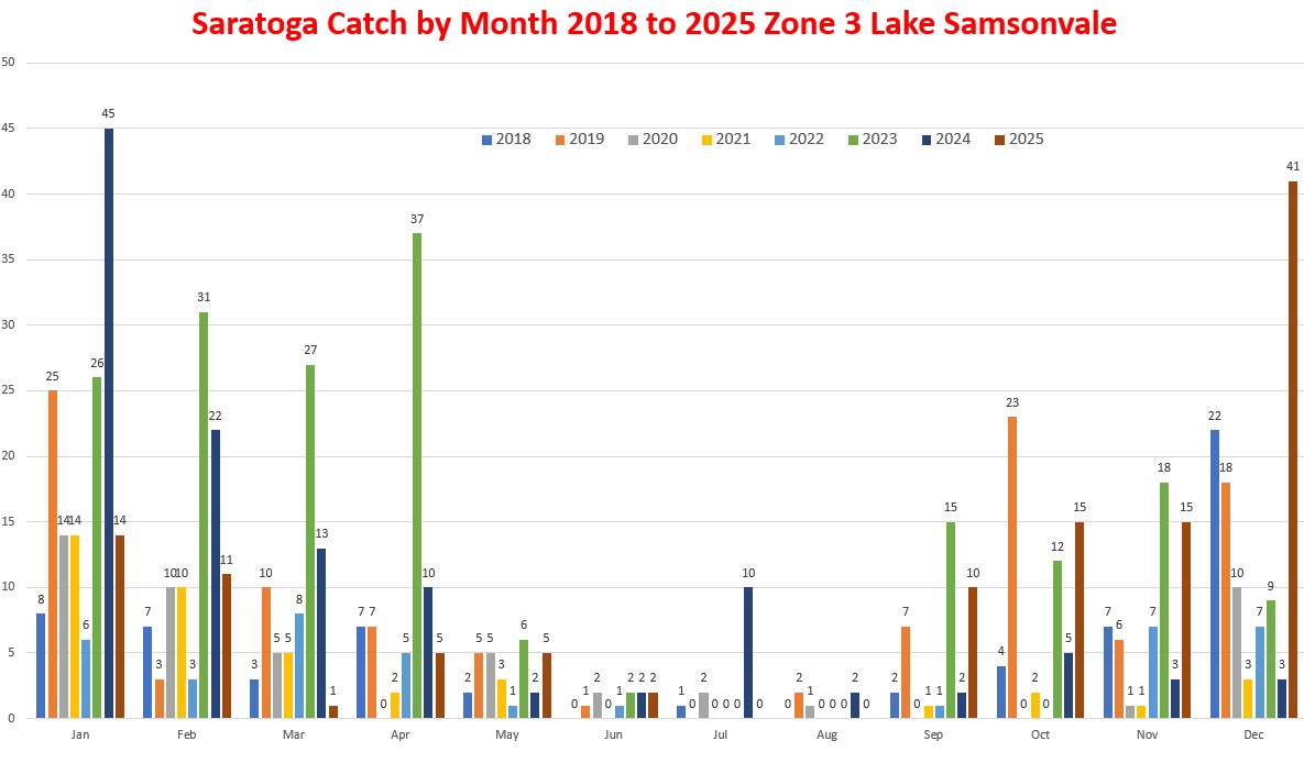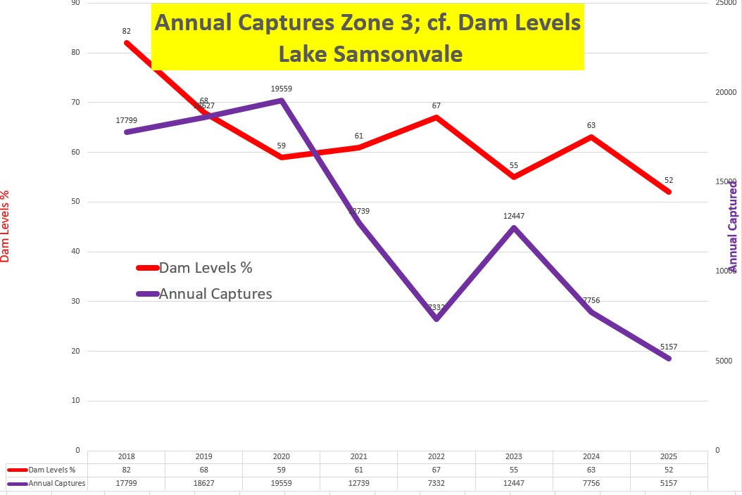 Although our data collection currently excludes catches from Forgan Cove (Zone 2 Lake Samsonvale) and land-based fishing activities, the significant Bass catch numbers remain a gratifying indicator of success. These results highlight the effectiveness of the Pine Rivers Fish Management Association (PRFMA) in its fish-stocking efforts and its commitment to maintaining a thriving fishery. The strong presence of Bass serves as a testament to the sustained efforts of the PRFMA, even as the fishery evolves to meet the changing needs and expectations of its visitors.